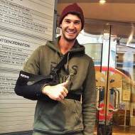 „Nachdem mir meine Schulter die letzten Monate große Probleme bereitete und sich trotz alternativer Reha und kompletter Schonung nicht besserte, wurde ich vorgestern von Lukas Brandner und Ulrich Lanz in Wien an meiner Bizepssehne operiert. Die OP verlief komplikationsfrei und mittlerweile bin ich schon wieder zuhause. Die nächsten Monate werden nicht leicht, aber ich werde alles tun, um gestärkt zurückzukommen!!! Greets Martin“
